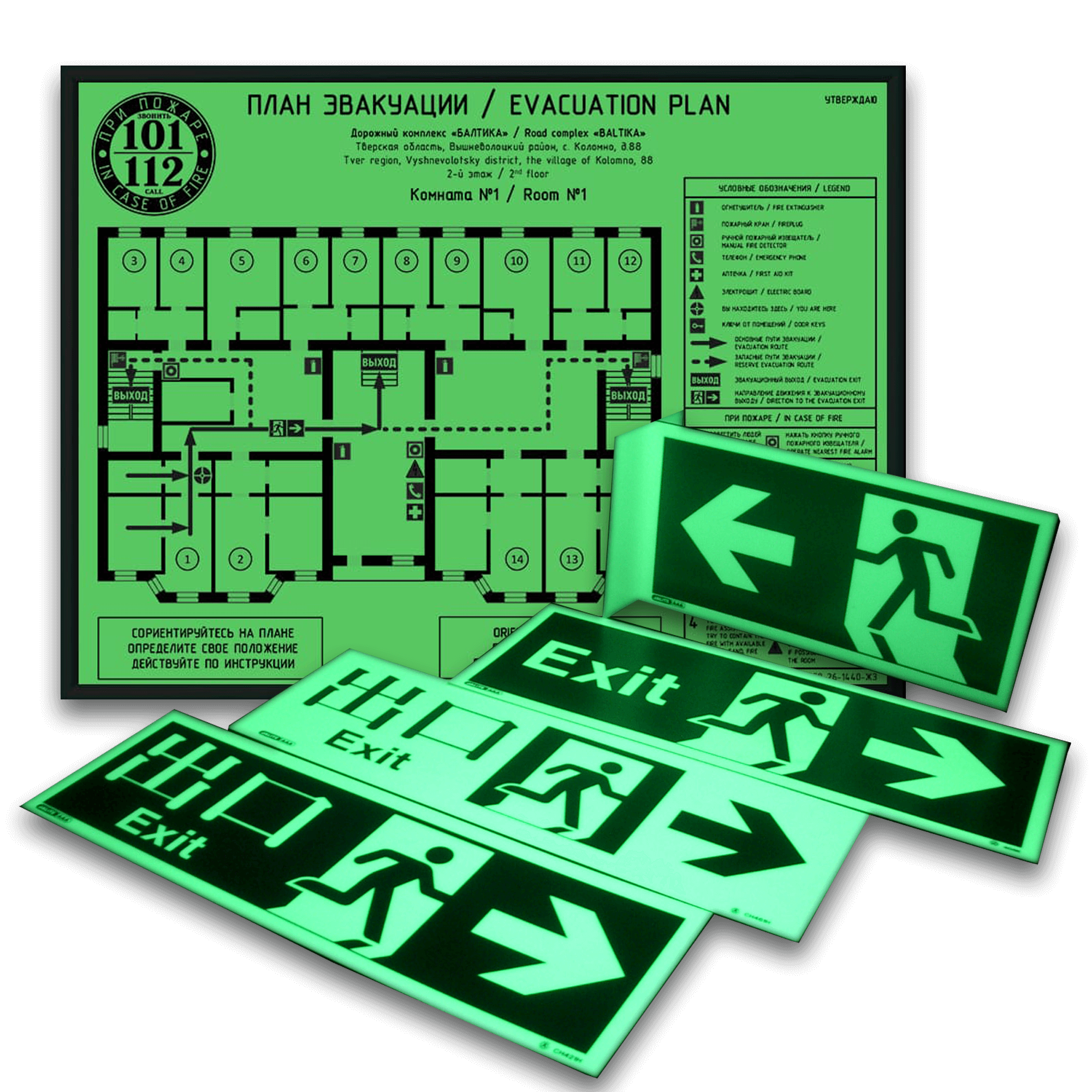 Все наши планы эвакуации в Алматы печатаются на сертифицированной фотолюминесцентной пленке. В случае аварийного отключения света схема продолжает ярко светиться, указывая безопасный путь выхода из задымленного или темного помещения.